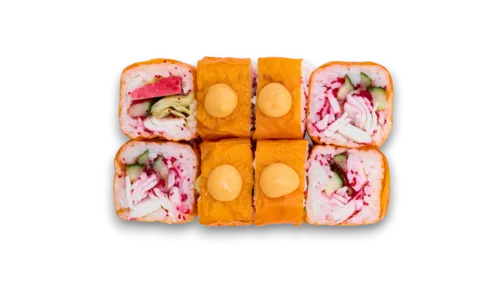суши-сендвич с лососем, суши-сендвич с беконом, ролл Филадельфия темпура, ролл Темпурный с беконом