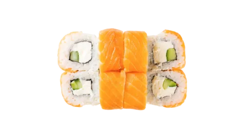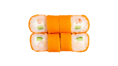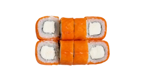 рис, нори, лосось копченый, огурец свежий, сыр творожный, масаго красная