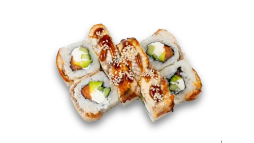Маки ролл в темпуре с лососем, Маки ролл в темпуре с угрем, Маки ролл в темпуре с тунцом, Маки ролл в темпуре с креветкой и сыром, Маки ролл "Филадельфия лайт в темпуре", Маки ролл в темпуре "Цезарь mini"