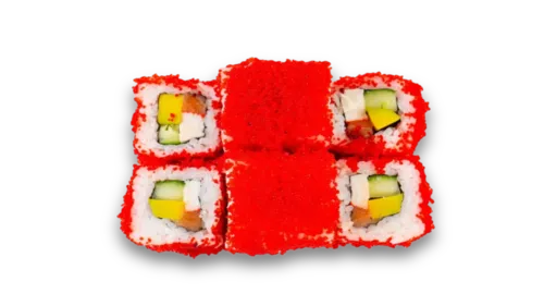 рис, нори, лосось, имитация краба, авокадо, огурец свежий, масаго красная